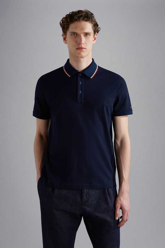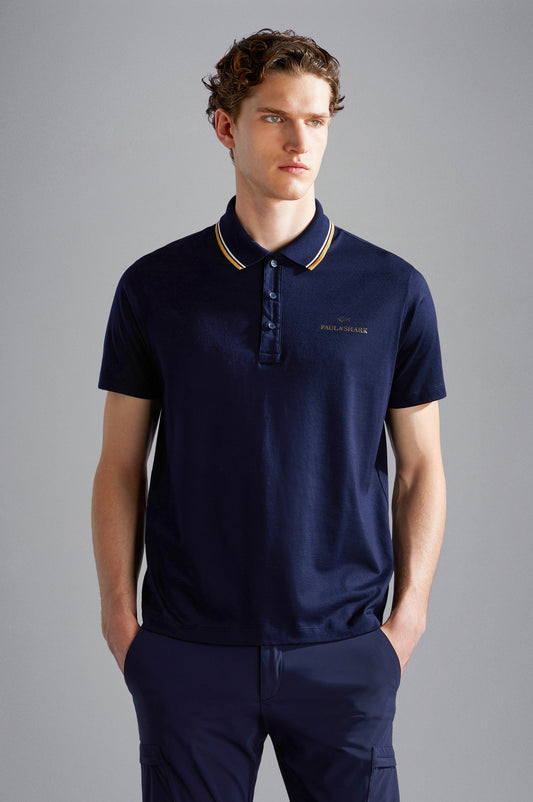 Clean striped trimmed polo shirt by Paul and Shark.Regular fit with moon badge logo on...