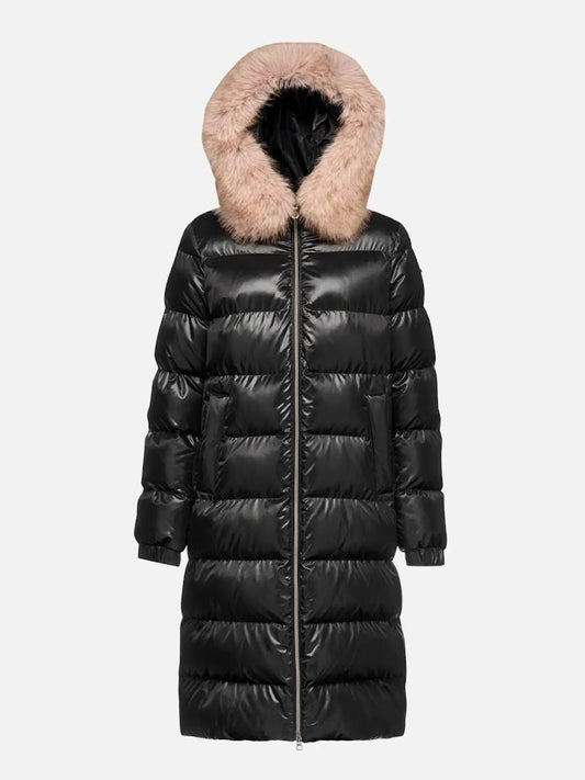 Women's longline parka jacket with a contemporary design and recycled material fill intended for the...